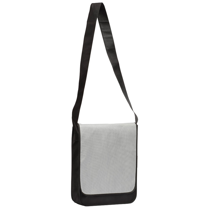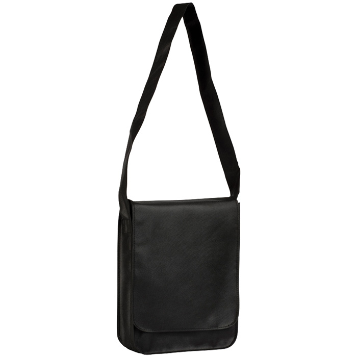 • Lightweight black bag with a coloured front flap and velcro fasteners.