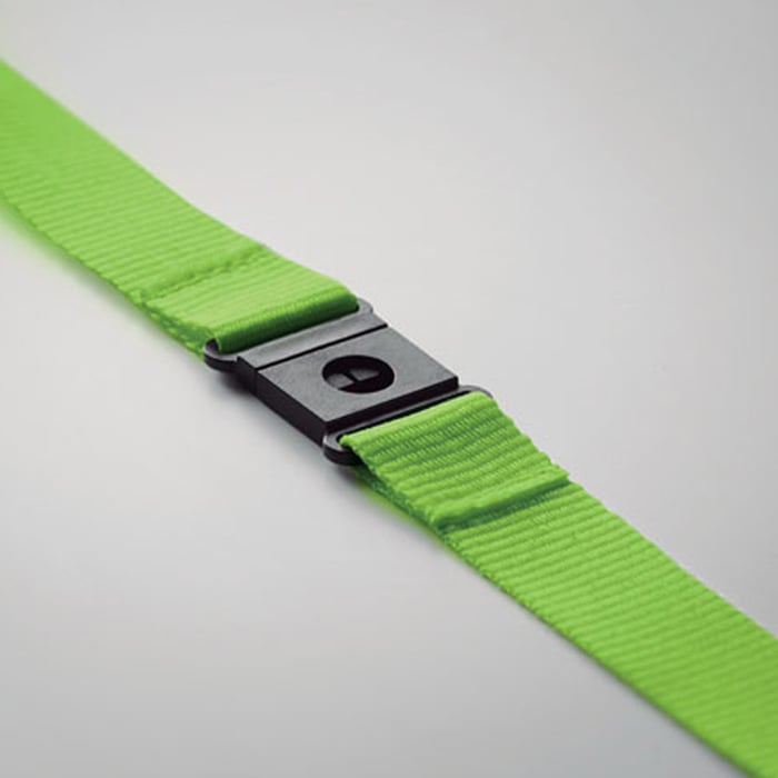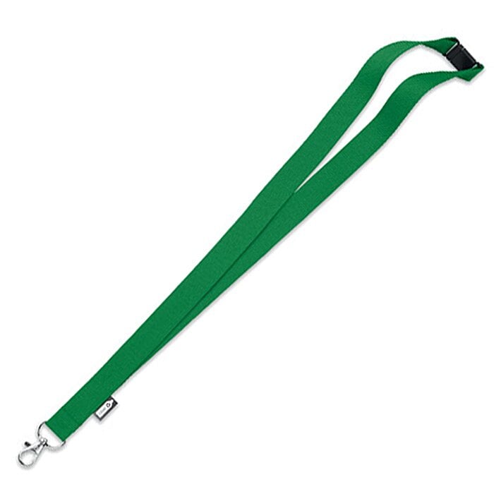 - 20mm wide, metal hook and black plastic safety break, the lanyard itself is made from recycled materials.