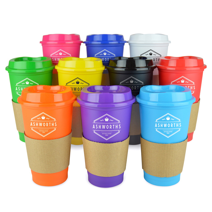 • 500ml plastic single-walled take-away styled mug (this means it is not insulated to keep drink warm).