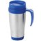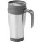 - Double-walled thermal mug with a stainless steel exterior and a plastic inner, lid and handle and a great choice of trim colours.