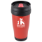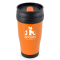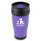 - These handle-free travel mugs have a coloured slide opener to match the coloured outer; the inside, rest of lid and base trims are black.