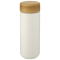 - Ceramic tumbler with a 300ml capacity, handle-free design and a stylish bamboo lid.