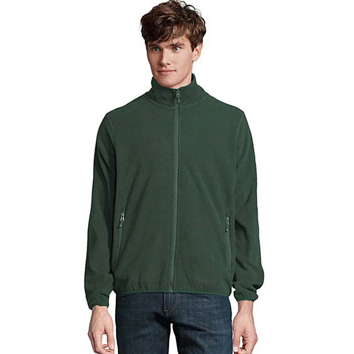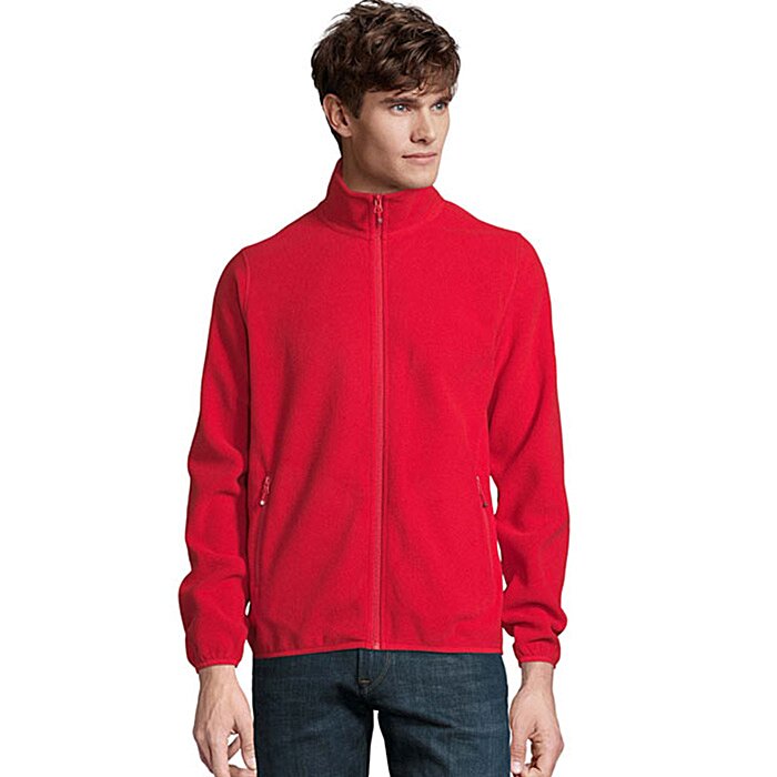 - Full zip fleece jackets made from recycled polyester fabric.