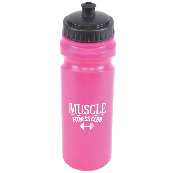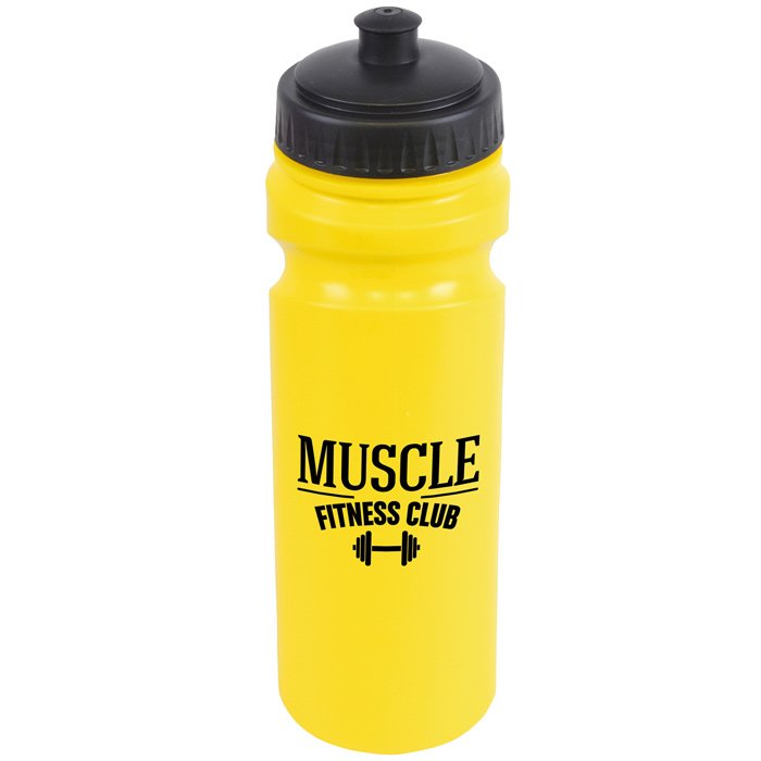 - 750ml plastic sports bottle in a great range of bright colours, all with black screw top lids.