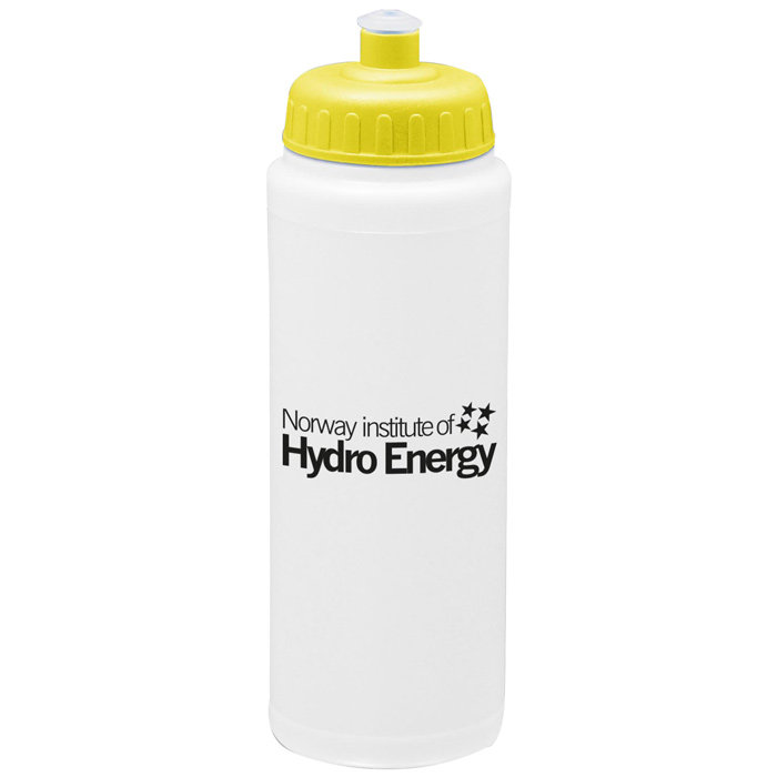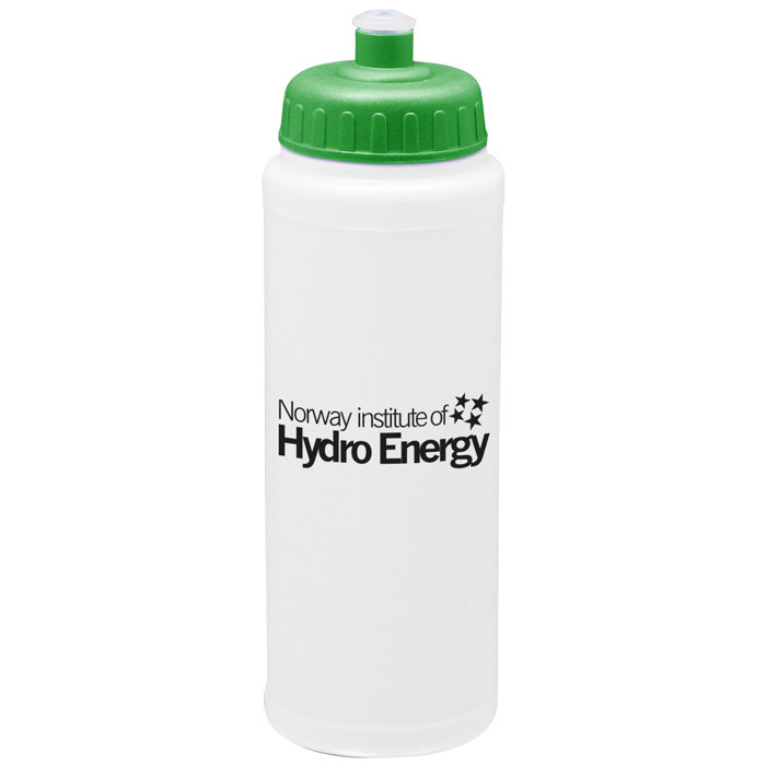 - 750ml plastic water bottle made from recycled milk carton plastic (polyethylene).