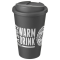 - Classic double-walled, coloured thermal mug with a matching coloured spill-proof lid.