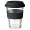 - Trendy, single-walled clear glass tumbler with a silicone grip and lid in a classic range of colours.