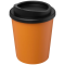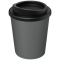 - Double-walled thermal mug with a black screw top lid, both the mug and lid are made from 100% recycled plastic.