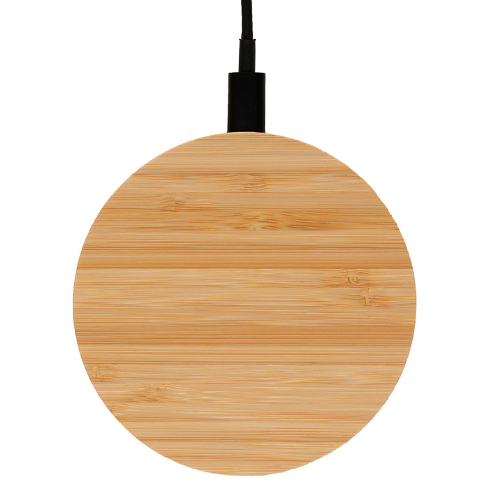 - Natural coloured wireless charger with a Bamboo outer casing.